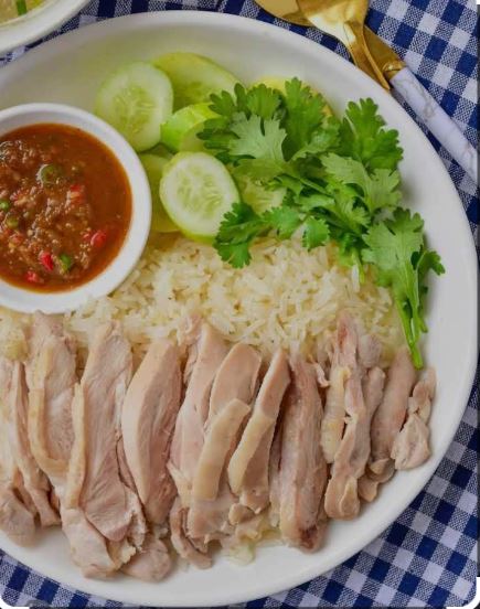 Proviene de inmigrantes chinos de la isla de Hainan que llegaron a Singapur en el siglo XIX. Adaptaron su receta de pollo hervido al estilo local, usando arroz jazmín y salsas picantes.