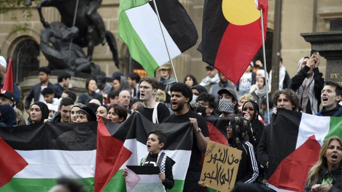 Según The Guardian, más de 100,000 personas marcharon en Melbourne y había una histórica afluencia en Brisbane. Los manifestantes reclamaron un alto al fuego, sanciones a Israel y el fin del comercio armamentístico con ese país.